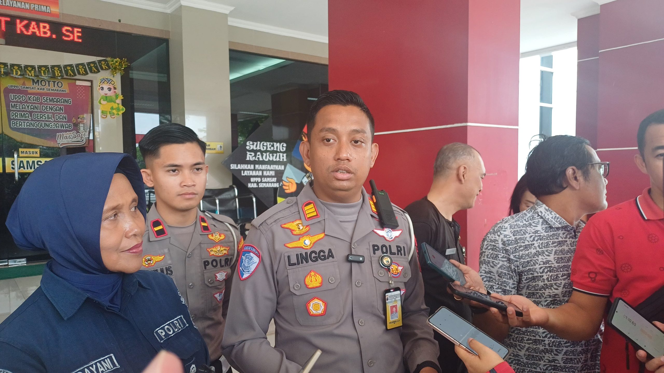 Mewakili Kapolres Semarang AKBP Ratna Quratul Ainy, S.I.K., M.Si., Kasat Lantas Polres Semarang AKP Lingga Ramadhani, S.T.K., S.I.K., CPHR., didampingi Kasi Humas AKP Pri Handayani, Kasi PKB UPPD M. Nadib, S.I.P., serta Kanit Regident Polres Semarang Ipda K. Aditya, S.Tr.K., menyampaikan bahwa masyarakat sangat antusias mengikuti program ini.