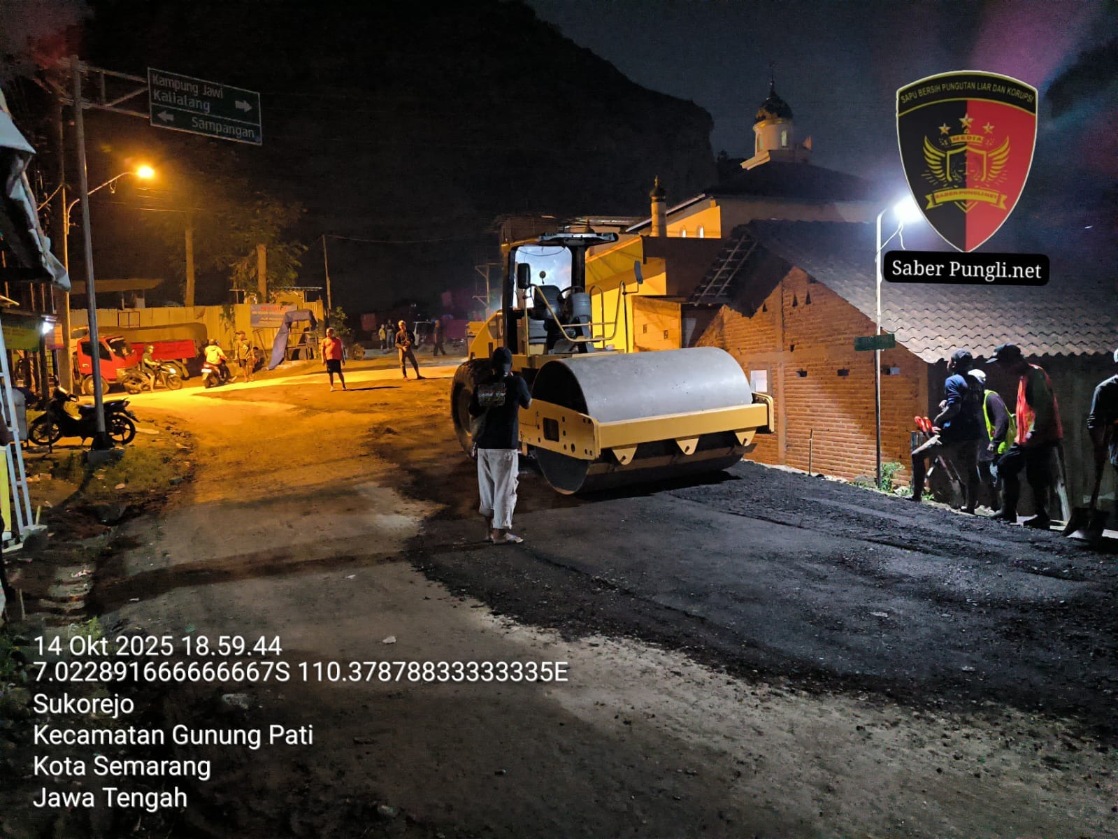 Kegiatan perbaikan tersebut dimulai senin malam (14/10/2025) pukul 22.00 WIB dan ditargetkan rampung pada Selasa pagi (15/10/2025). Pekerjaan meliputi peninggian dan penataan permukaan jalan rusak serta pemasangan saluran air (u-ditch) untuk memperkuat sistem drainase di kawasan tersebut.