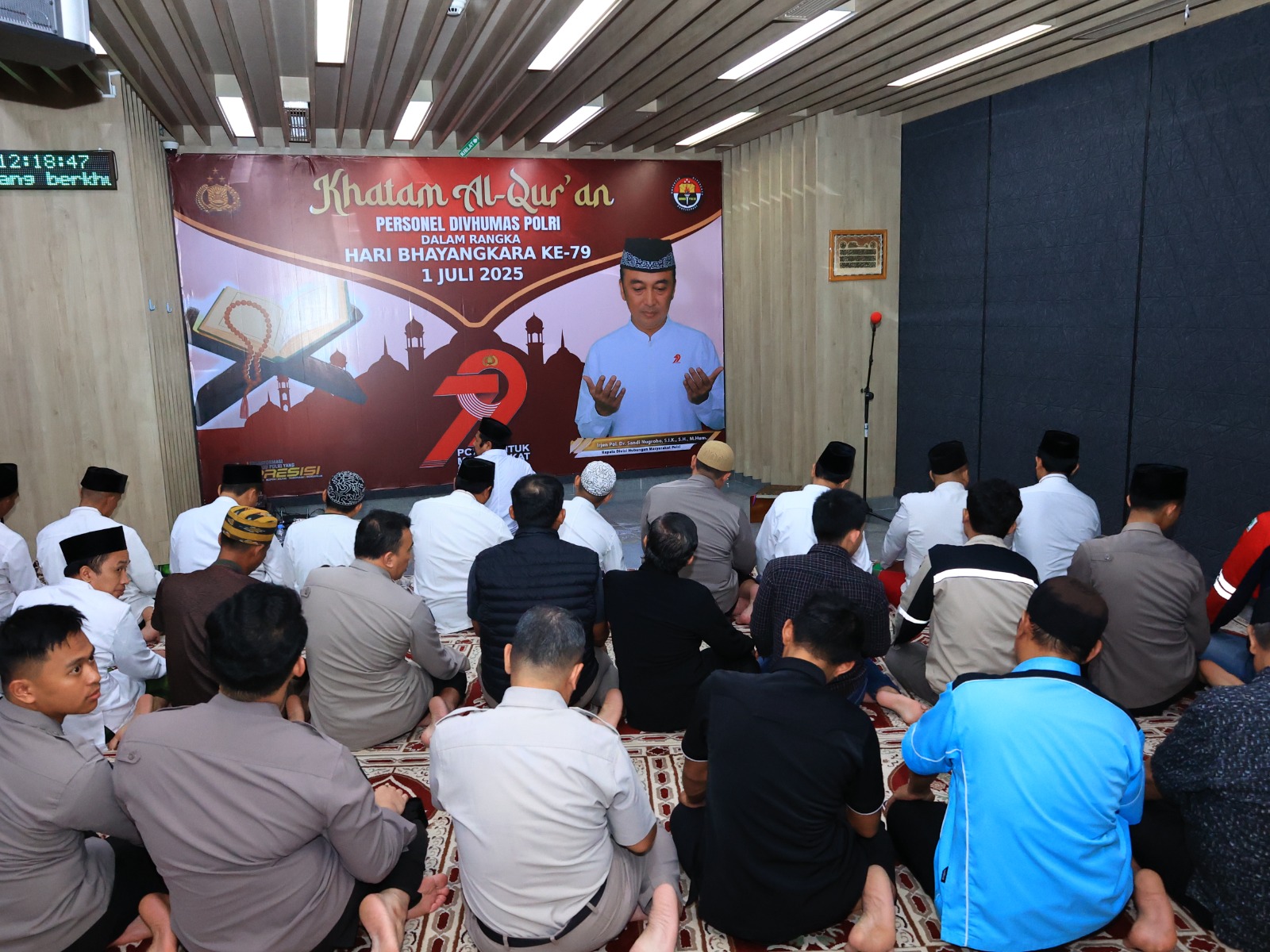 Jakarta,SaberPungli.net: Divisi Humas Polri menyelenggarakan kegiatan 79 kali khatam Al’Quran bertepatan dengan HUT Bhayangkara Ke-79. Khataman digelar di Masjid Divhumas Polri dari pukul 06.00 WIB hingga pukul 12.30 WIB.