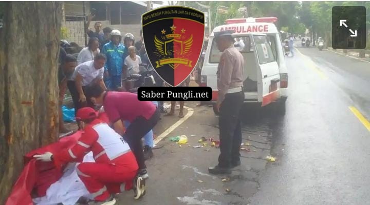 Akibat mengantuk, sepeda motor yang dikemudikan Ardana oleng ke kiri jalan dan menabrak pohon.