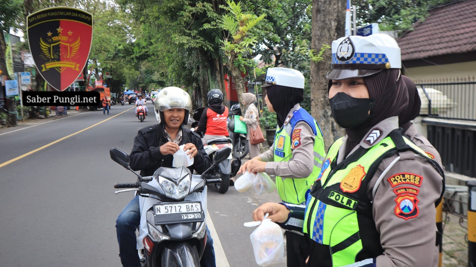 MALANG [SaberPungli.net] Polres Malang membagikan ratusan paket takjil gratis kepada para pengguna jalan yang melintas di depan Mapolres Malang, Sabtu (28/2/2026).
