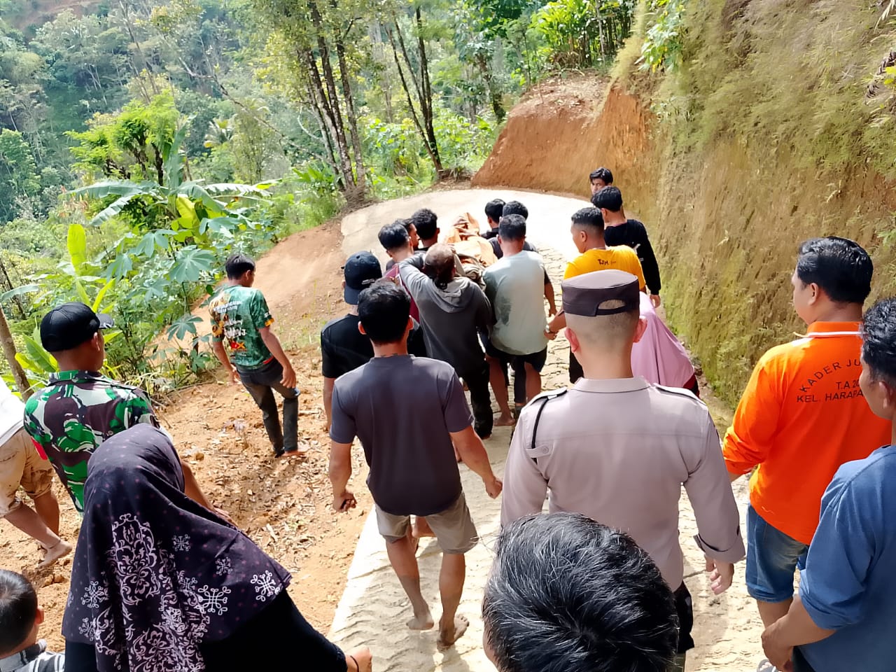 Mendapat laporan warga sekitar pukul 12.00 WIB, petugas piket Polsek Jatiroto bersama Bhabinkamtibmas Briptu Ade segera menuju lokasi kejadian untuk melakukan pencarian bersama masyarakat.