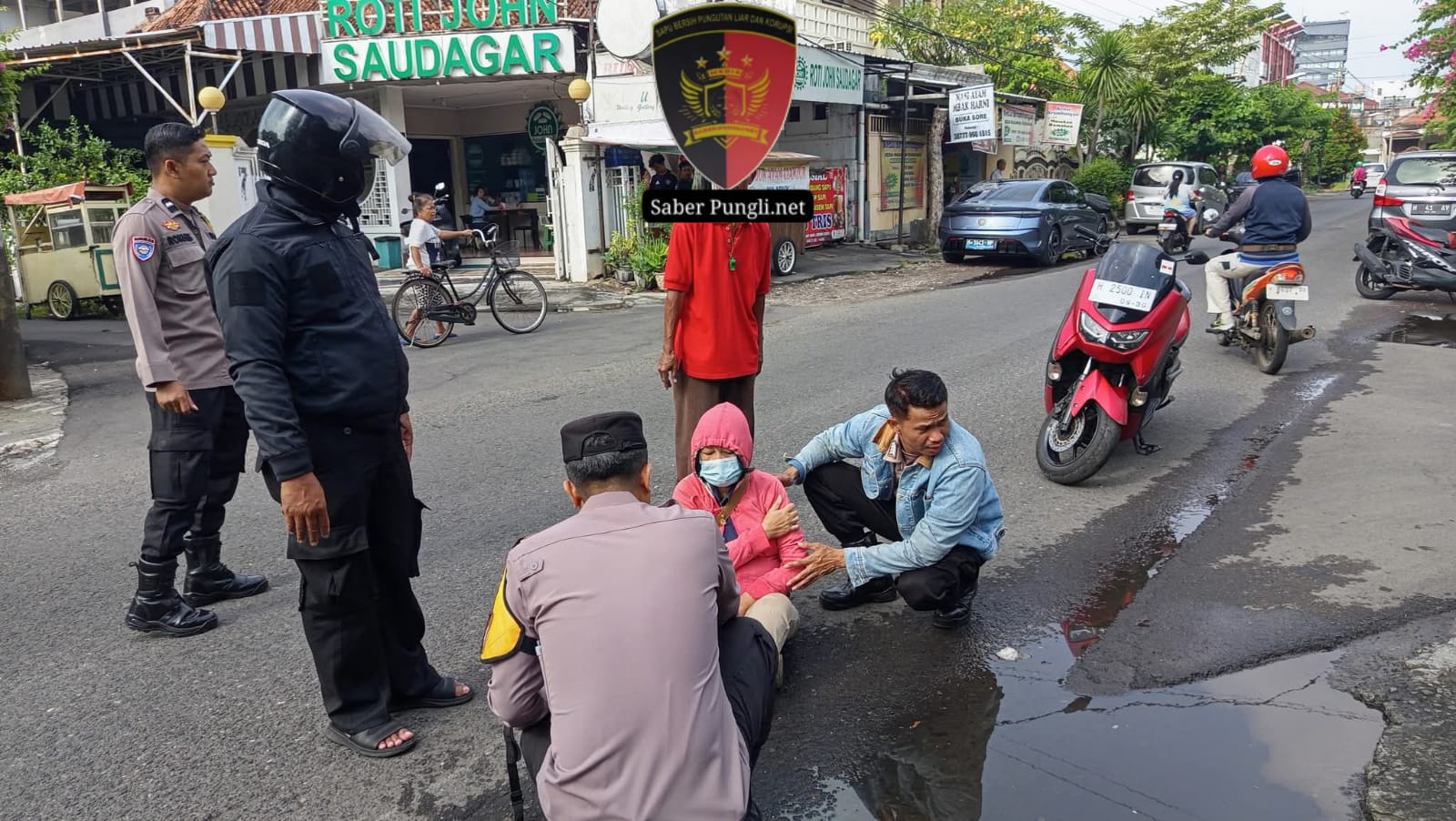 “Saya melihat ibu-ibu itu mengendarai motor Honda Scoopy melaju dari arah timur ke barat. Saat melewati depan toko roti John, motornya terpeleset dan jatuh. Tidak lama kemudian, bapak-bapak polisi datang dan langsung menolong korban dengan cepat,” terang Purwanto.