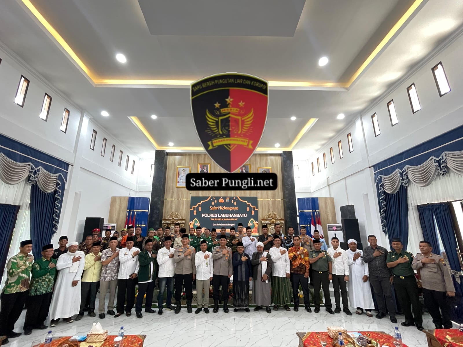 LABUHANBATU [SaberPungli.net] 13 November 2025 – Suasana penuh kehangatan dan persaudaraan mewarnai kegiatan Safari Kebangsaan yang digelar oleh Polres Labuhanbatu, Polda Sumatera Utara. Acara ini dihadiri oleh seluruh unsur Muspida dari dua kabupaten sekaligus, yakni Labuhanbatu dan Labuhanbatu Utara, bersama para tokoh agama, adat, budaya, serta perwakilan ormas dan OKP dari kedua wilayah tersebut.