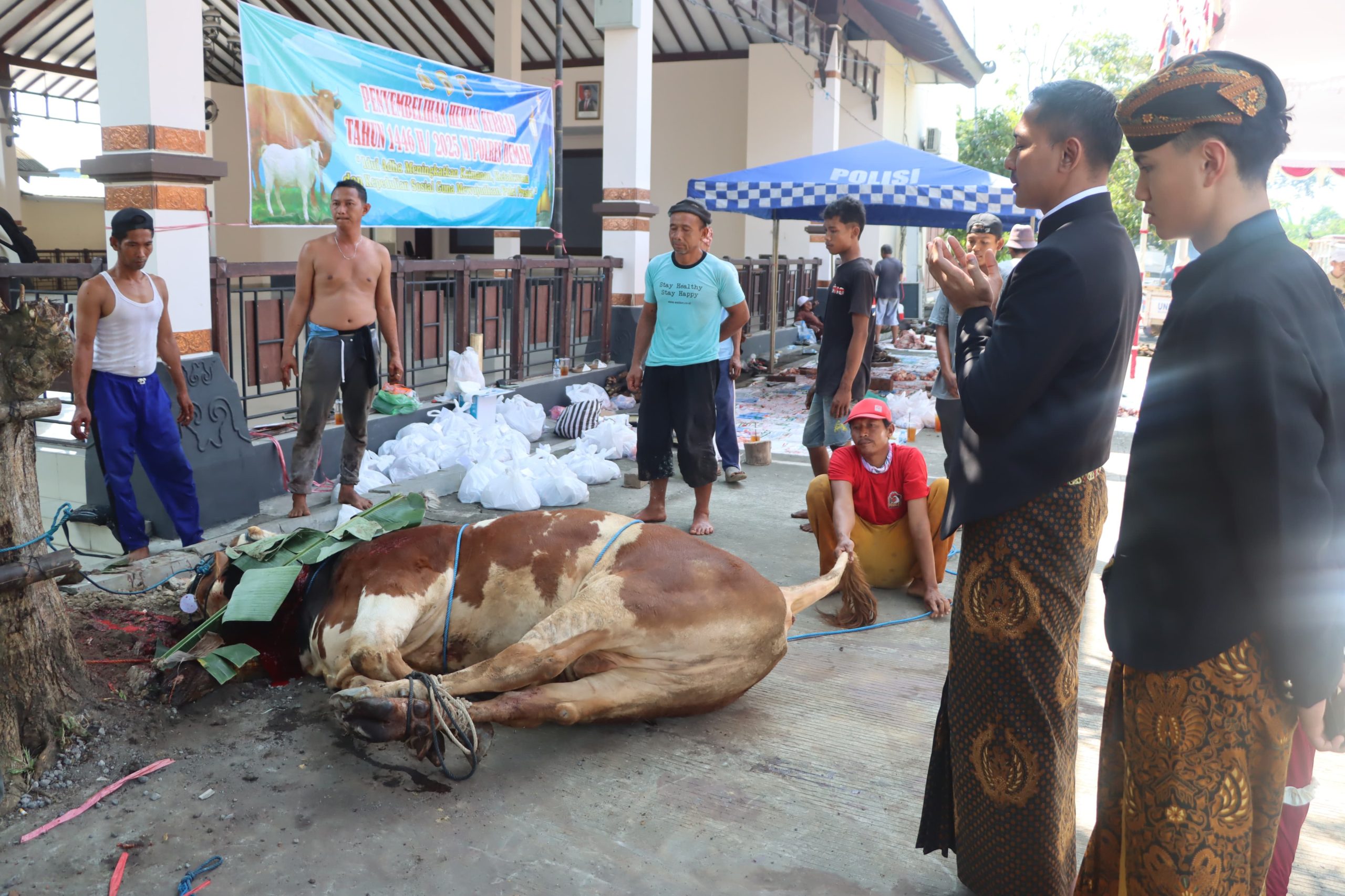 “Personel Polres Demak dan jajaran yang berkurban kami kumpulkan menjadi satu di Polres. Alhamdulillah, terkumpul enam ekor sapi dan lima ekor kambing. Hewan-hewan ini kami sembelih, lalu dagingnya dikemas untuk dibagikan kepada masyarakat sekitar dan warga yang membutuhkan,” ujar AKBP Ari.