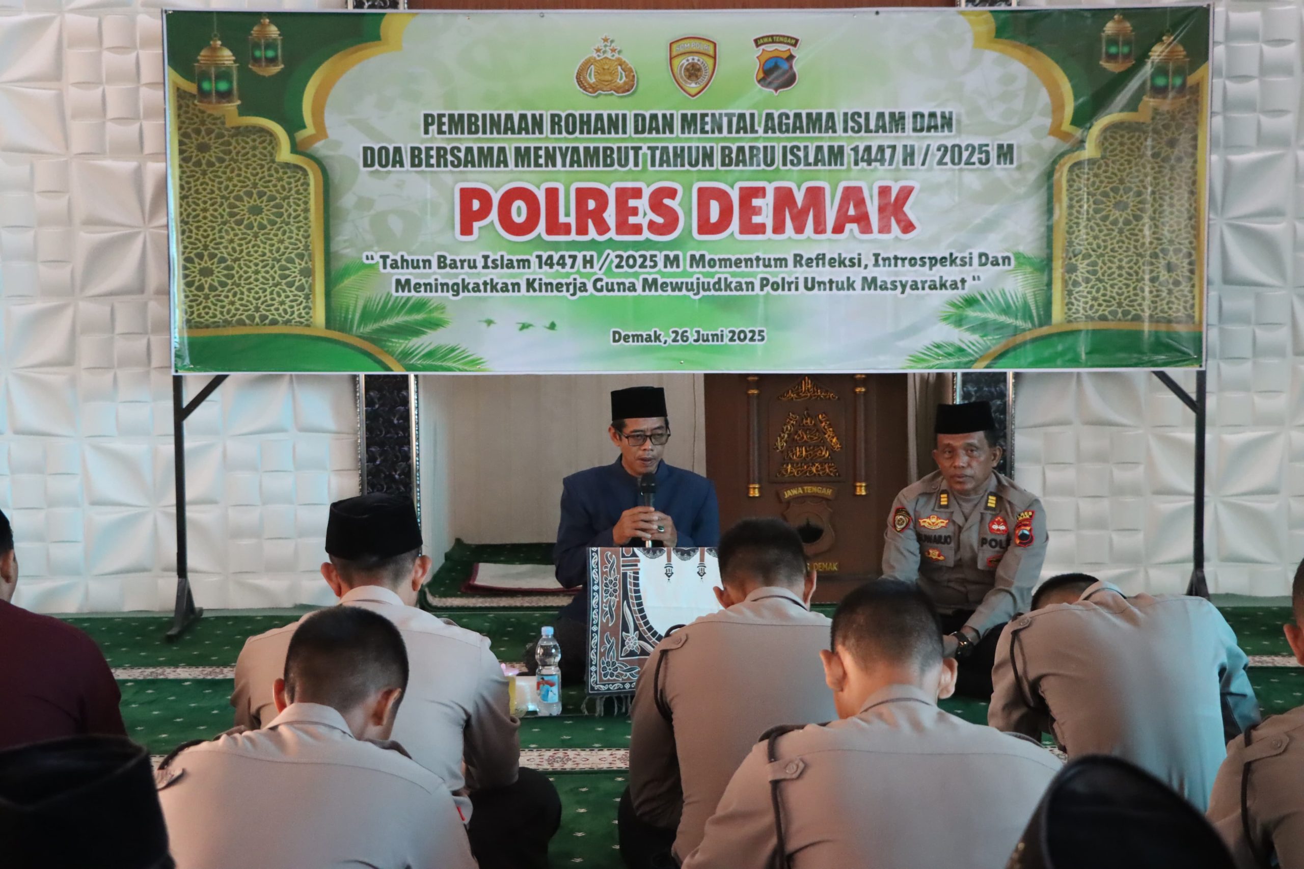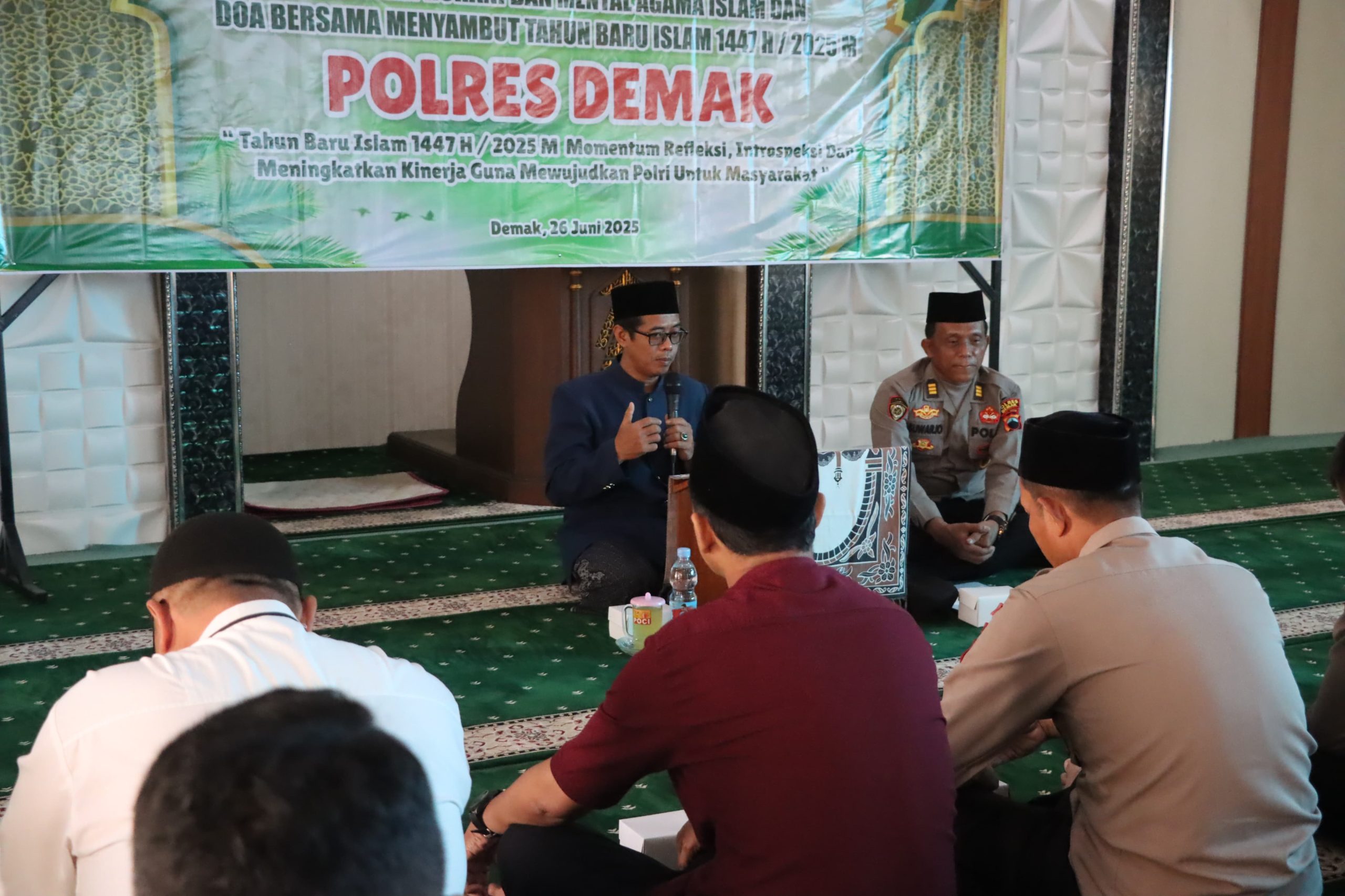 Demak,SaberPungli.net: Kepolisian Resor (Polres) Demak menggelar acara pengajian, pembinaan rohani dan mental, serta do’a bersama, Kamis (26/6/2025) di Masjid Uswatun Hasanah Mapolres setempat.