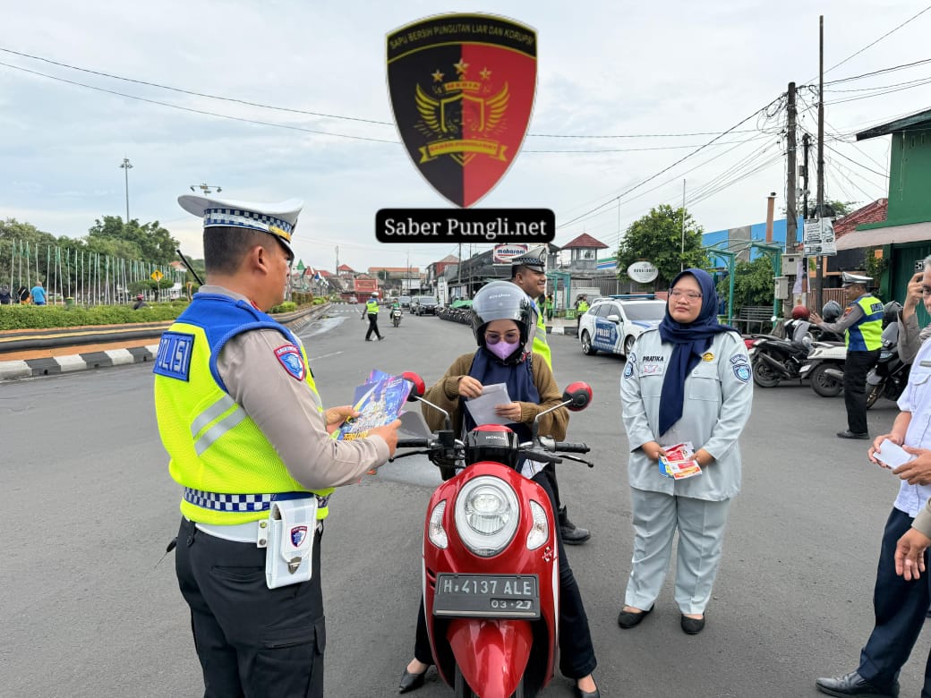 Demak [SaberPungli.net] Satuan Lalu Lintas Polres Demak menggelar sosialisasi Operasi Zebra Candi 2025 di Alun-alun Demak, Rabu (19/11/2025). Kegiatan yang dipimpin Kepala Urusan Pembinaan dan Operasional (KBO) Satlantas Polres Demak, Iptu Djoko Prayitno itu menyasar para pengguna jalan yang melintas di kawasan pusat kota. Sosialisasi dilakukan untuk meningkatkan kepatuhan masyarakat terhadap aturan lalu lintas selama pelaksanaan Operasi Zebra yang berlangsung 17–30 November 2025.
