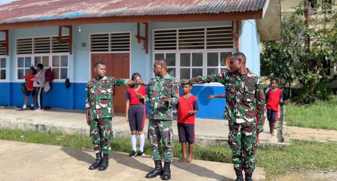 Papua,SaberPungli.net:Pembentukan karakter dan penanaman disiplin sejak dini kepada generasi muda dilakukan Satgas Pamtas RI-PNG Kewilayahan Papua Barat Daya Yonif 762/VYS dengan melatihkan Peraturan Baris Berbaris (PBB) dan kegiatan senam bersama siswa dan siswi SD Inpres 13 Kumurkek, Kampung Kumurkek, Distrik Aifat, Kabupaten Maybrat, Papua Barat Daya. Rabu (12/02/2025).