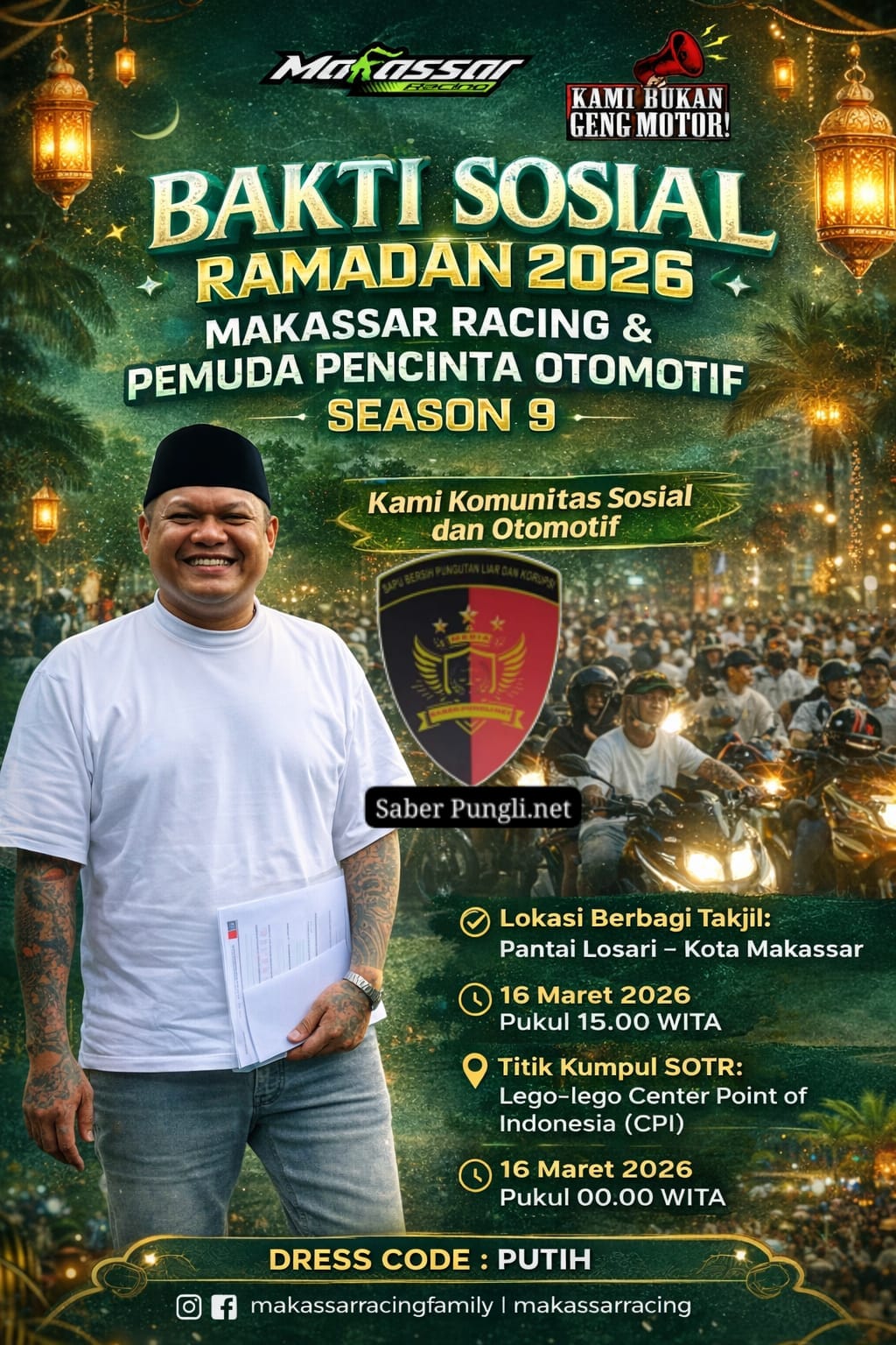 “Bakhti sosial Makassar Racing Family bersama pemuda pecinta otomotif berbagi pada Season 9. Insyaallah mari kita sukseskan bersama-sama.
