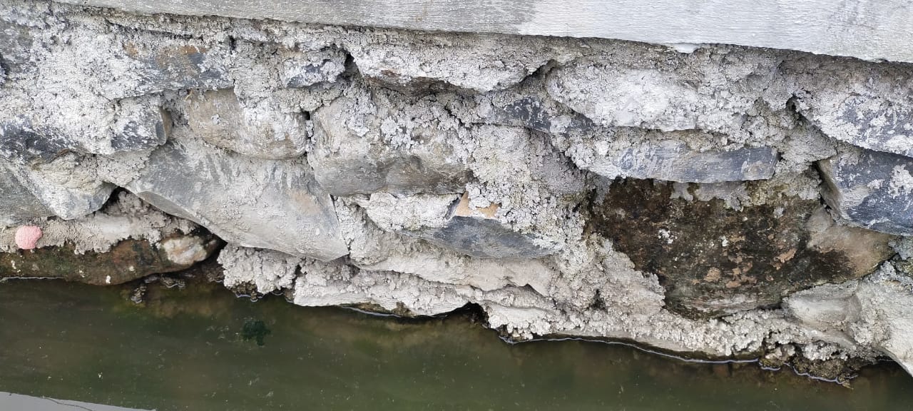 “Bangunan itu waktu dibangun kurang semen, bahkan dibagian tengah itu hanya batu yang ditumpuk-tumpuk kemudian hanya ditutup semen pinggirnya saja.” ujarnya.