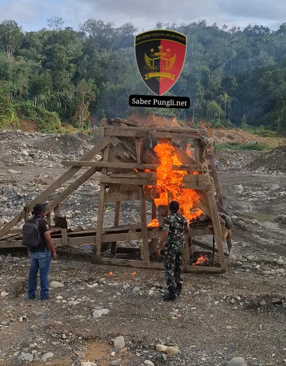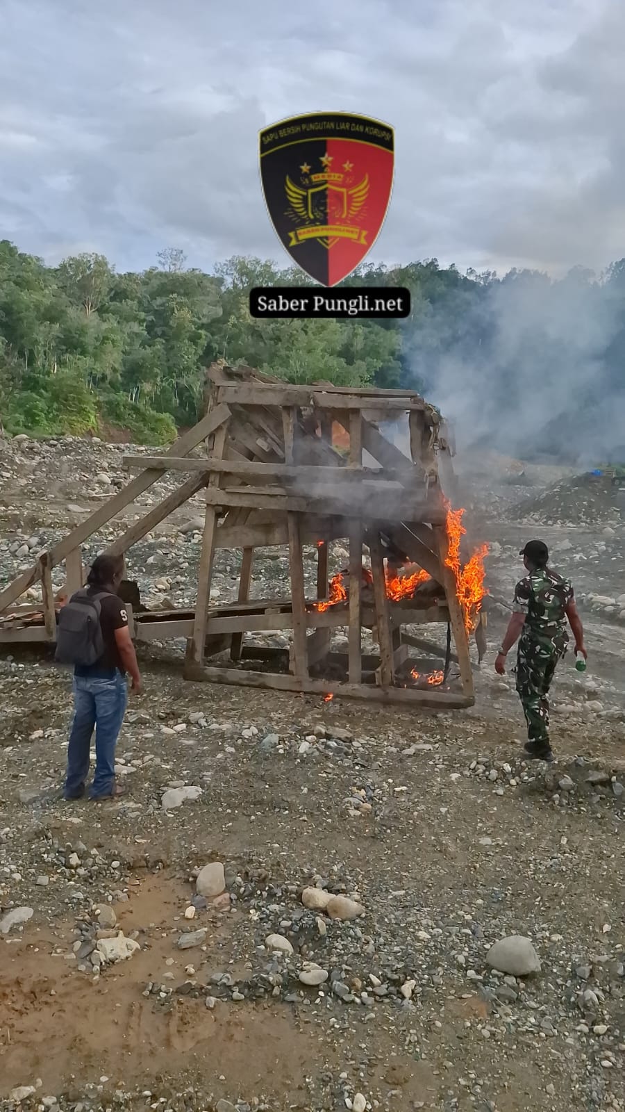 Tak hanya itu, personel juga turut membakar beberapa peralatan penyaringan emas di lokasi. Hal itu dilakukan agar para pelaku tidak lagi kembali melakukan aktivitas penambangan.