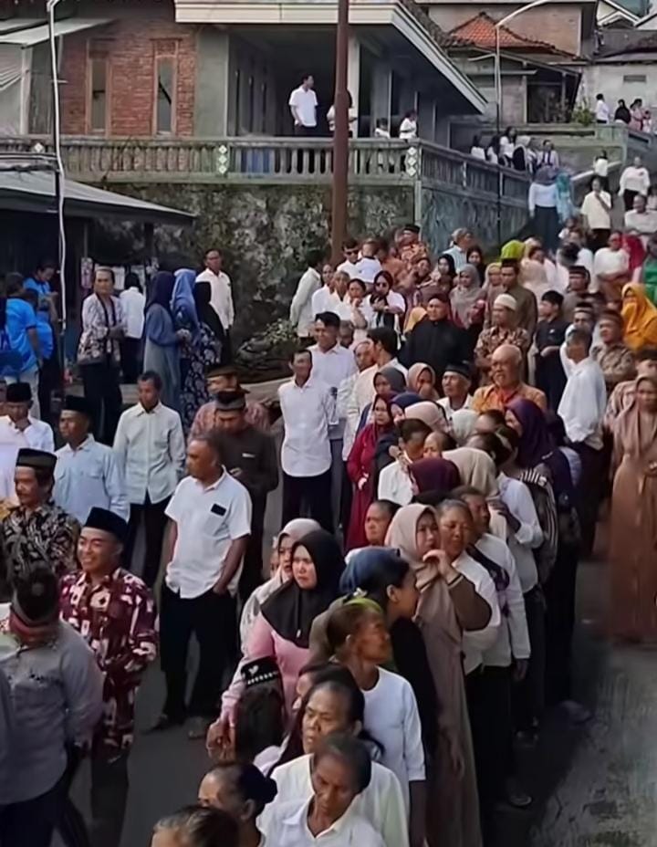 Dengan tertib, warga berdiri rapi menunggu ibadah selesai.