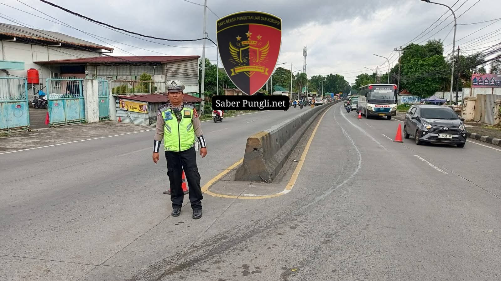 SEMARANG [SaberPungli.net] Unit Lalu Lintas Polsek Banyumanik melaksanakan rekayasa arus lalu lintas dengan sistem contraflow di ruas Jalan Perintis Kemerdekaan, Kecamatan Banyumanik, Kota Semarang, Senin (26/1/2026). Rekayasa arus diterapkan menyusul adanya pekerjaan pengecoran jalan di depan Masjid Al Hasanah yang berpotensi menimbulkan kepadatan kendaraan.
