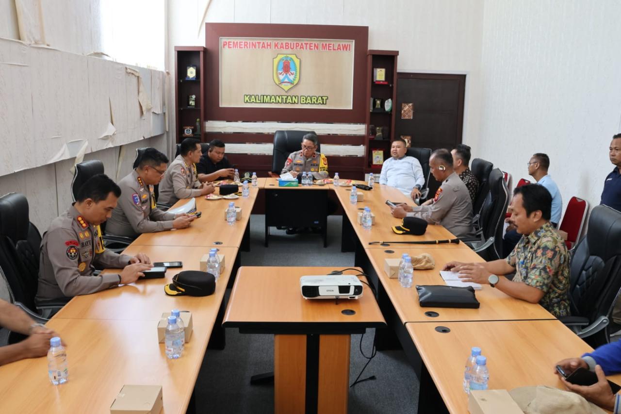 Setibanya di Bandara Nanga Pinoh menggunakan Helikopter Polri AW 169/P-3304, di sambut Bupati Melawi, Ketua DPRD Melawi dan PJU Polres Melawi.