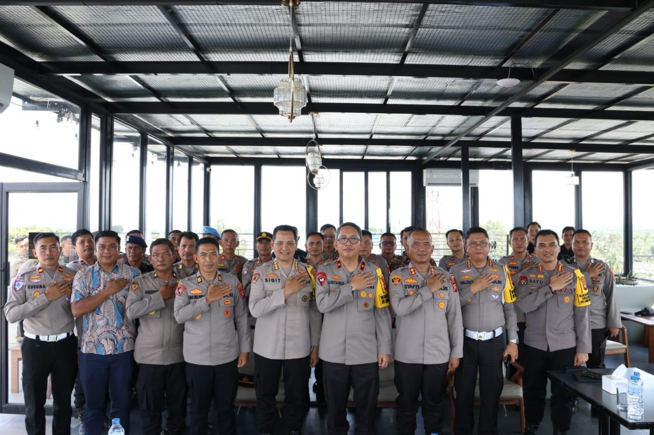 Waka Polda usai penanaman jagung di dampingi Irwasda Polda Kalbar Kombes Pol. Sigit Jatmiko, S.H., S.I.K., Dirlantas Polda Kalbar Kombes Pol. Valentinus Virasandy Asmoro, S.I.K., M.H., Kabid Humas Polda Kalbar, Kombes Pol. Dr. Bayu Suseno, S.H., S.I.K., M.M., M.H., Kapolres Melawi Muhammad Syafi’i, S.I.K., S.H., M.H melanjutkan kegiatan di Cafe Freya untuk melaksanakan pertemuan dan arahan berkenaan dengan program ketahanan pangan.