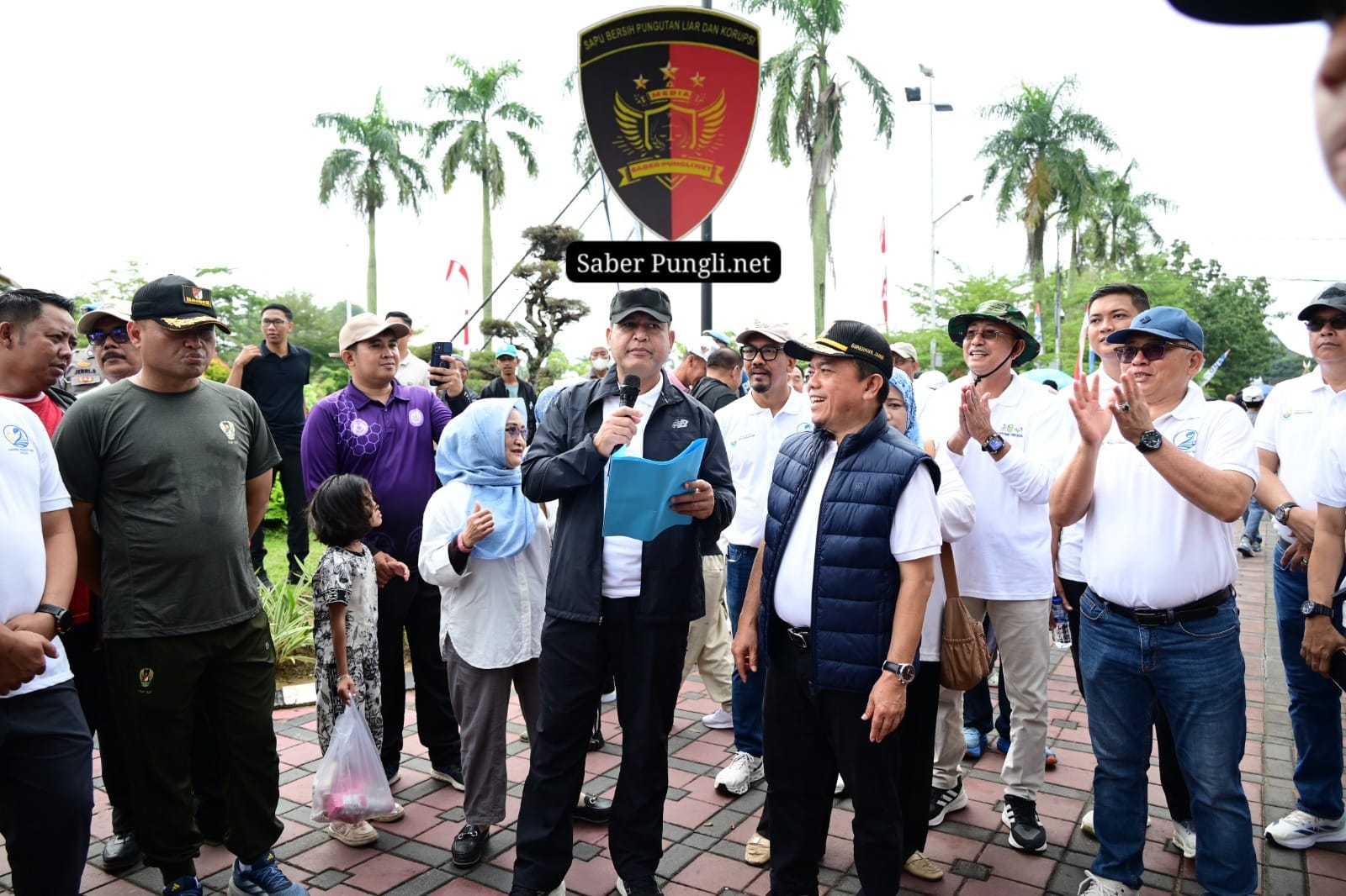 Kota Jambi [SaberPungli.net] 10/1/2026 – Jalan santai dilepas langsung oleh Gubernur Jambi Al Haris dan diikuti oleh berbagai unsur Forkopimda Provinsi Jambi, di antaranya Ketua DPRD Jambi, Kabinda Jambi, Kasi Ops Korem 042/Gapu, serta ribuan masyarakat yang antusias mengikuti kegiatan tersebut. Kegiatan dilaksanakan di Kantor Gubernur Kota Jambi.