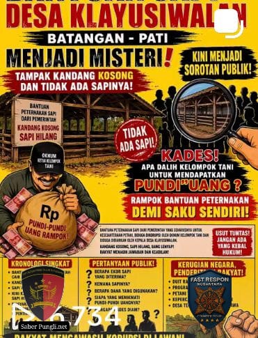 Pati, Kamis,23 April 2026 [SaberPungli.net] Dugaan penyelewengan bantuan sapi yang bersumber dari Bantuan Keuangan (Bankeu) Pemerintah Kabupaten Pati mencuat di Desa Klayusiwalan, Kecamatan Batangan. Kasus ini menjadi sorotan masyarakat setempat setelah warga menilai penyaluran bantuan tidak sesuai dengan peruntukannya.