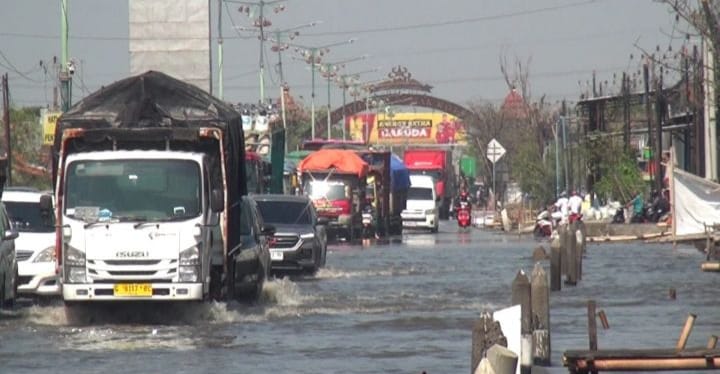 Penyebab utama adalah kombinasi pasang surut air laut, curah hujan tinggi, dan penurunan muka tanah.