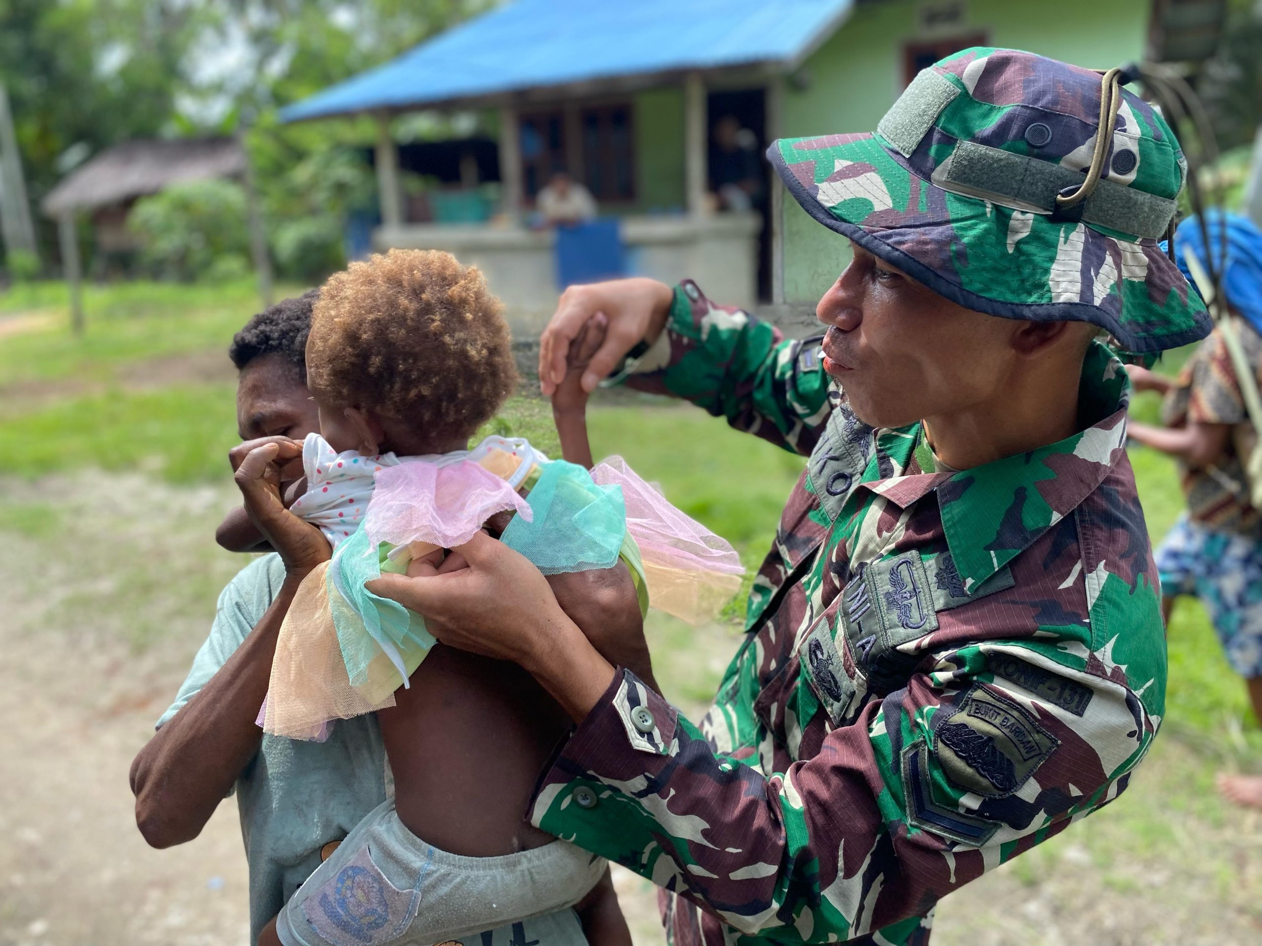“Terima kasih bapak TNI sudah berkunjung ke kampung kami dan membagikan baju, baju – baju yang bapak TNI berikan sangat bermanfaat bagi kami,” pungkasnya penuh haru.